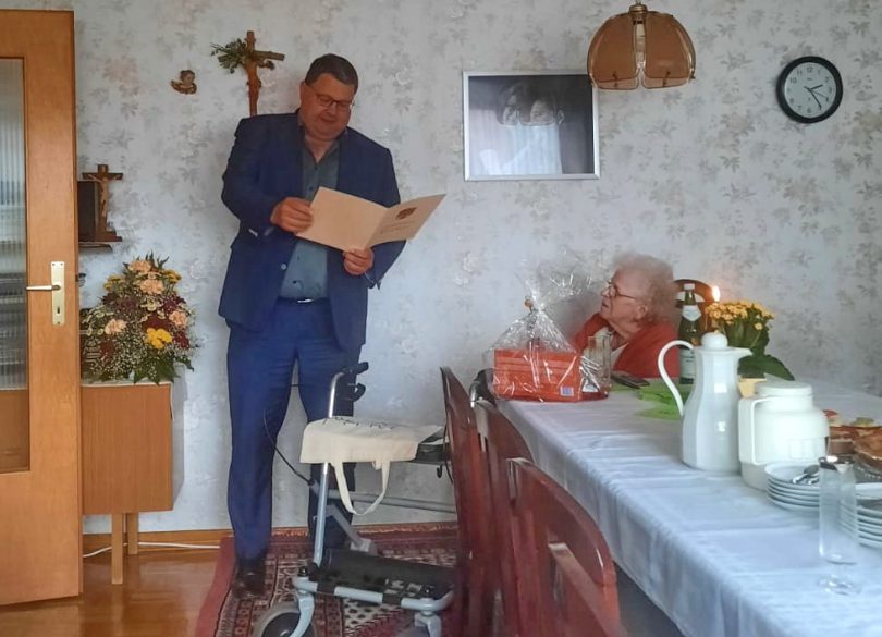 Unsere Aufnahme zeigt Eindrücke von der Gratulation durch Bürgermeister Götz Esser von der Gemeinde Weilrod zum 85. Geburtstag von Anna Jeck in Hasselbach.