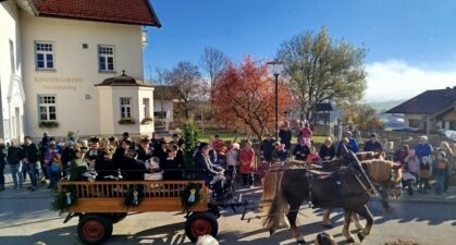 Und wie es sich gehört, sind wir dann noch länger geblieben, die Greimhartinger Dorfgemeinschaft hat für gutes Essen und Trinken gesorgt und so war es wieder a scheens Zsamma kemma bei bester Unterhaltung. Drinnen in der vollbesetzten Gemeindehalle spielte die Musikkapelle Prien zünftig auf und auch draußen saß man gemütlich an den Biertischen beinander und immer wieder hörte man: „Ja Griasdi, schee dass ma uns wieder moi sehn!“.