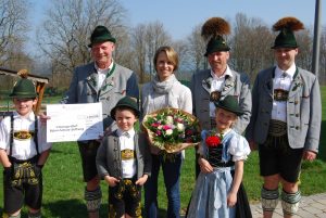 Die Vorsitzenden Franz Schuster und Gerhard Albersinger übergeben den Spendenscheck an die Schirmherrin Magdalena Neuner.