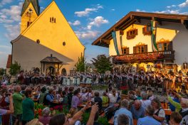 Große Freude herrschte auf dem Samerberg, da nach vier Jahren erstmals wieder ein Tag der Blasmusik auf dem Samerberg begangen werden konnte. Erstmals fand die Veranstaltung am Abend und bei schönsten Wetter- und Rahmenbedingungen statt.