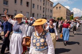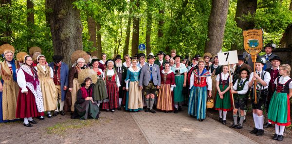 Etwa 2500 Menschen aus ganz Deutschland, Polen, den Niederlanden und der Ukraine haben am Sonntag Nachmittag am großen Trachtenumzug im Rahmen des Deutschen Trachtenfestes in Lübben/Spreewald teilgenommen. Der Umzug bei idealen Wetter war der finale Höhepunkt des dreitägigen Deutschen Trachtenfestes an der Spree. Knapp 70 Trachtengruppen zeigten unter dem Motto “Tracht verbindet” eine Trachtenvielfalt aus üppigen Stickereien, prächtigen Hauben und riesigen Röcken.