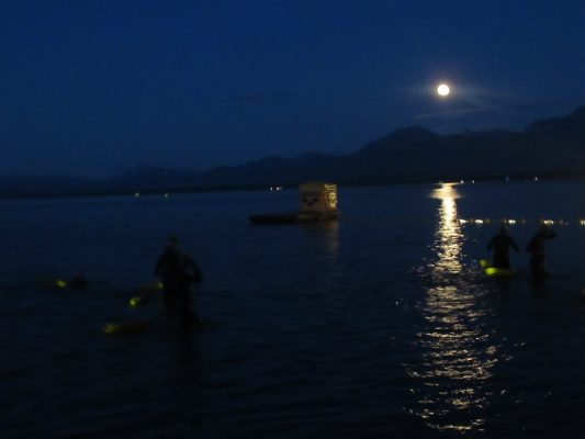 Der arena Alpen Open Water Cup ist einer der bestbesuchten Open Water-Wettkampfserien im deutschsprachigen Raum. Das Vollmondschwimmen in Prien war der fünfte von acht Durchgängen. Es war eine wunderbare Sommernacht und die 250 Teilnehmer hatten nach Einbruch der Dunkelheit unter Vollmond einen zwei Kilometer langen Dreieckskurs vom Schraml Bad Richtung Herreninsel, parallel zur Herreninsel und zurück zum Schraml Bad zu schwimmen.