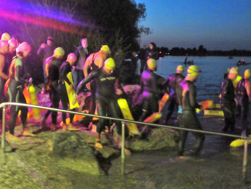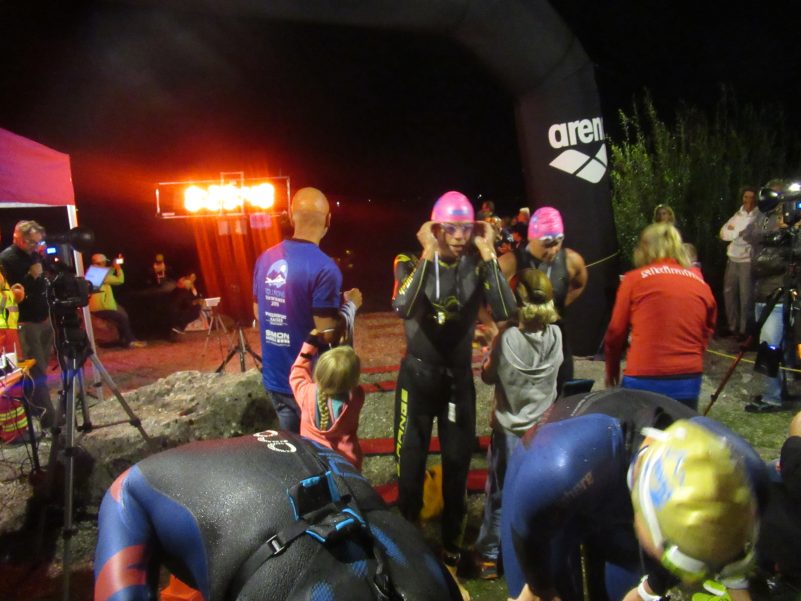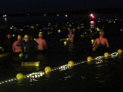 Für die Profis unter den Wettkämpfern war es eine sportlicheHerausforderung, für die Amateure war nur das besondere Erlebnis in einer einzigartige Atmosphäre wichtig. Jeder Wettkämpfer musste mit einer LED-Leuchte antreten, damit er für die Wasserretter im Dunkeln sichtbar war. Die langsamsten Teilnehmer durften eine Stunde brauchen, sonst wurden sie aus dem Rennen genommen. Florian Wellbrock und Rob Muffels waren gleichzeitig nach knapp 20 Minuten im Ziel.