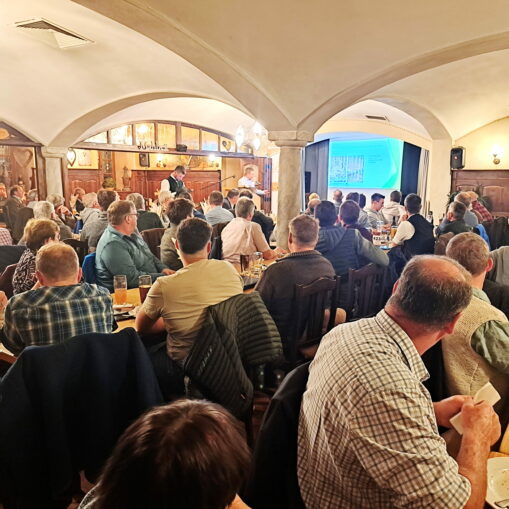 Über hundert interessierte Bürgerinnen und Bürger kamen kürzlich in den Happinger Hof in Rosenheim zu einem Infoabend zur Biberthematik. Eingeladen hatte der Kreisverband der Freien Wähler, dessen Vorsitzender und stellv. Landrat Sepp Hofer auch die Begrüßung der Gäste übernahm. Unter den Gästen waren auch vier Bürgermeister aus dem Landkreis, Bezirksrätin Barbara Stein und einige Kreisräte. Der angekündigte Vertreter aus dem Umweltministerium musste leider kurzfristig absagen. Landtagsabgeordneter Sepp Lausch ging deshalb als Ersatz als erstes auf die Vorgeschichte ein, stellte die gesetzlichen Rahmenbedingungen rund um den Artenschutz kurz vor und gab einige Zahlen aus dem Umweltministerium bekannt. So wurden z.B. im Landkreis Rosenheim mit rund 1450km² Fläche 2023 46 Biber entnommen, im Landkreis Erding mit nur rund 870km² und einem Flughafen aber 115 Tiere.