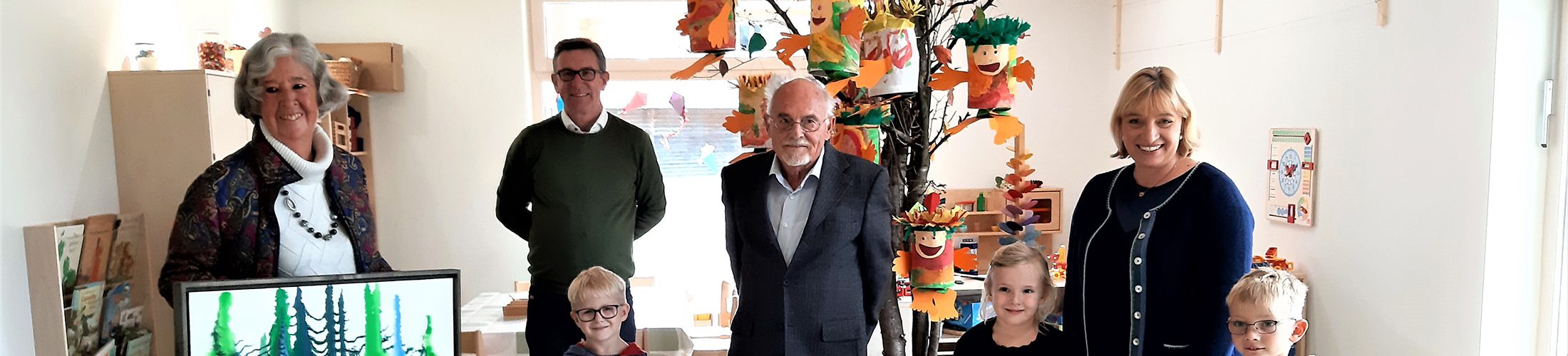 Der Rosenheimer Maler Max Kögel beweist ein „Herz für Kinder“: Kögel hat nun die Einnahmen aus dem Verkauf seiner Aquarelle in der Ausstellung „Samerberger Ansichtssachen“, die im Februar in Grainbach stattgefunden hat, dem Kindergarten Samerberg gespendet. Max Kögel (geb. 1938) hat in seinen Aquarellen seit über 60 Jahren einfühlsam Landschaft und Wolkenstimmung am Samerberg eingefangen. Zahlreiche Besucher aus dem ganzen Umkreis kamen zu der Ausstellung, die noch vor der Corona-Krise durchgeführt wurde. „Der Spendenbetrag von 1000 Euro soll den Samerberger Kindern zu Gute kommen, am besten für Malzwecke“, sagte Kögel, denn er beobachtet mit größter Freude die Kinder beim Malen. Bürgermeister Georg Huber und Andrea Paul, die Leiterin der Samerberger Einrichtung, bedankten sich für die großzügige Spende. Gleichzeitig übergab die Grainbacherin Ingrid Auer eines ihrer Bilder als Spende an die Einrichtung.