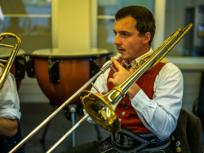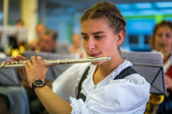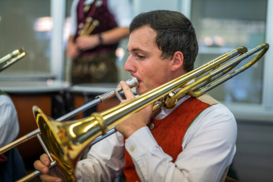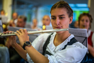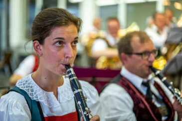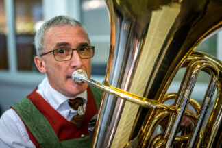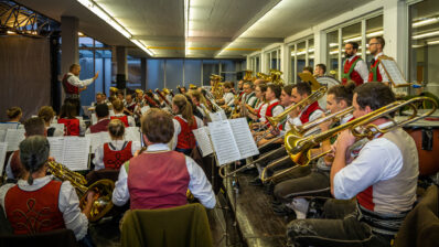 Bunt und doch harmonisch präsentierte sich das Euregio Blasorchester Inntal mit Musikanten, die alle in der vereinseigenen Tracht oder Uniform musizierten. Es sind 62 Mitwirkende aus 20 Musikformationen im neuen Blasorchester mit dabei: