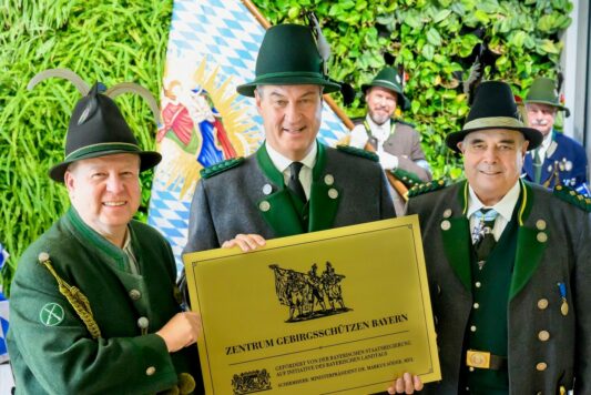 Am 25. September 2023 hat Ministerpräsident Dr. Markus Söder an der feierlichen Unterzeichnung der Gründungsurkunde für das Zentrum Gebirgsschützen Bayern in der Bayerischen Staatskanzlei teilgenommen.