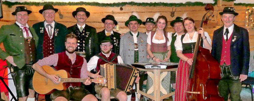 Mit dabei der 2. Vorstand, Alois Haydn, und Vorplattler Richard Schenk. Mit Trachtentanz und Plattler, unter der Begleitung der Gögginger Tanzlmusi, brachten die Gäste vom Drei-Flüsse-Gau die Almhütte zum Beben. Unter dem Motto “Von altbairisch bis modern” haben sich die Gögginger Musiker einen großen Namen gemacht. In ihrem Repertoire spiegelt sich traditionelle Volksmusik bis hin zu modernen Stücken der Blasmusikszene wieder.