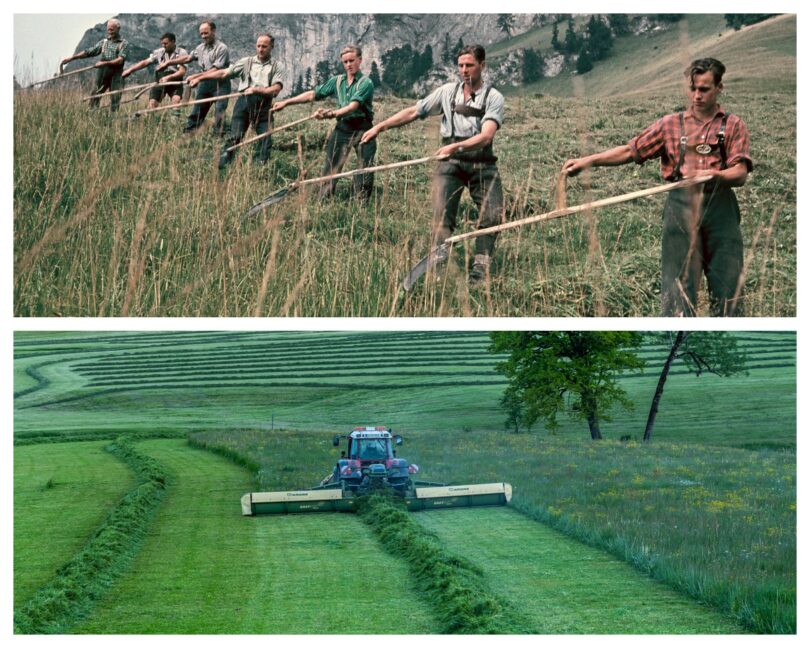 Tabellen & Text: Bayerisches Landesamt für Statistik  – Fotos: Rainer Nitzsche  – Mähen früher und heute