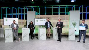 The Jury left to right: Moderator Roman Rackwitz; Hendrik Haase; Dominik Ewald; Gerald Dohme; Lars Jaeger, Project Manager, International Green Week presents the winner : MARKTKOST