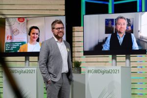 Die Jury: Eva Piepenbrock; Marcus Reh; Moderator Roman Rackwitz im Studio *** Local Caption *** IGW Startup-Days – Award ceremony
