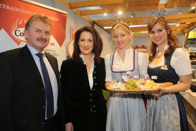 Als Heimat der Genüsse präsentiert sich der Freistaat derzeit auf der Internationalen Grünen Woche in Berlin. In der eigenen Bayernhalle können die Besucher der weltgrößten Ernährungsmesse zehn Tage lang entdecken und probieren, welche kulinarischen Genüsse und unvergleichlichen Spezialitäten der Freistaat zu bieten hat. Auch die Milchwerke Oberfranken aus Meeder und die Destillerie Möbus aus Bad Rodach (beide Lkr. Coburg) sind heuer unter dem Berliner Funkturm wieder mit von der Partie. Landwirtschaftsministerin Michaela Kaniber schaute bei ihrem Messerundgang am Stand der Genussbotschafter aus dem Coburger Land vorbei und unterstützte sie bei der Vermarktung der geistreichen Genüsse und vielfältigen Käse-Spezialitäten aus dem Frankenland.
