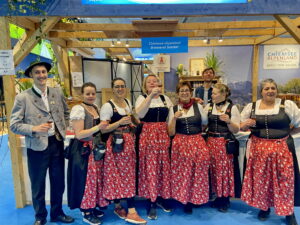 Entenwirt-Bedienungen am Stand der Brennerei Stocker mit Kalendermacher Andal Raab