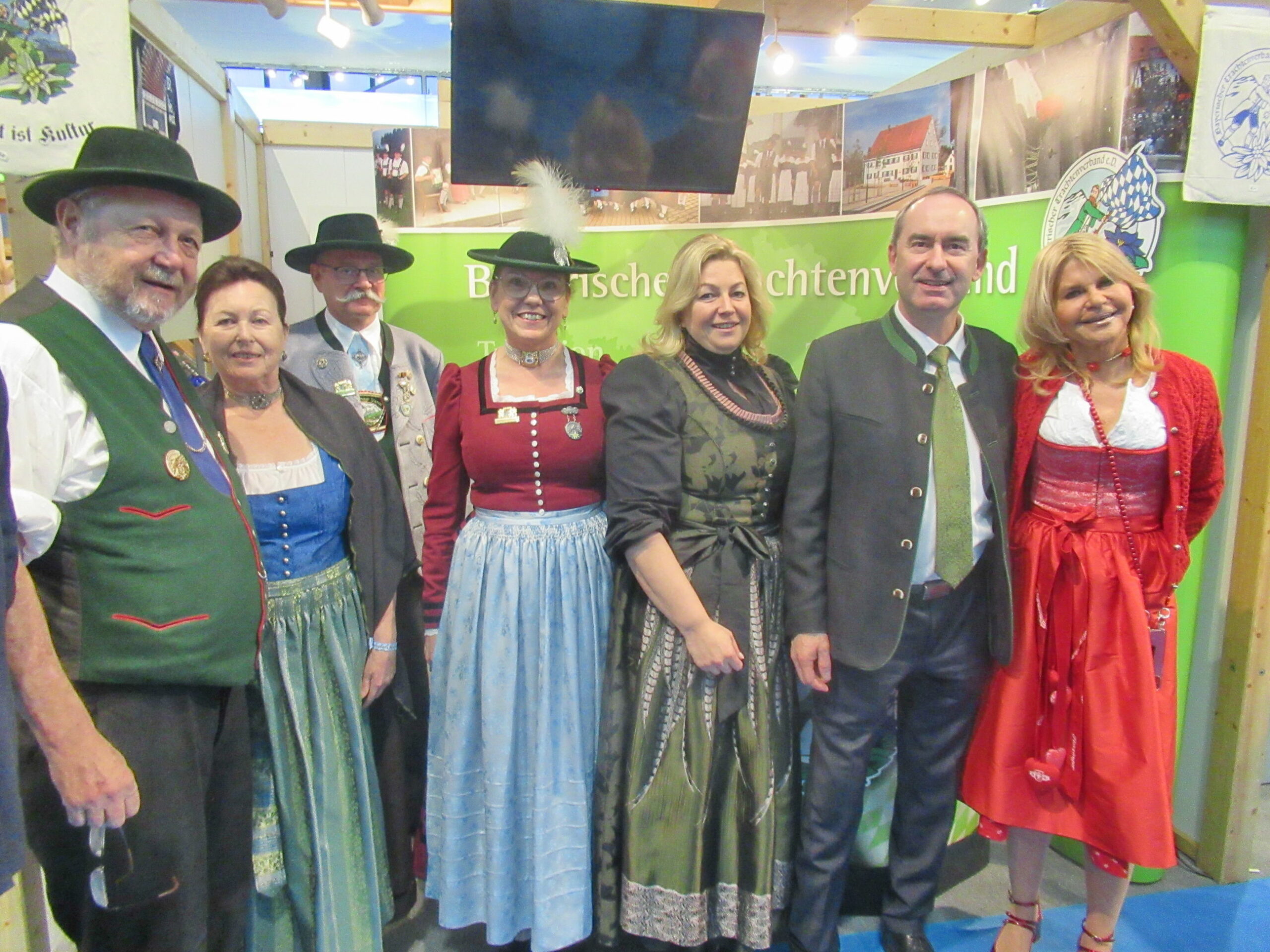 Wirtschaftsminister Hubert Aiwanger im Gespräch mit den Trachtlern sowie mit Bürgermeisterin Susanne Grandauer aus Nussdorf und Marisa Steegmüller von Flötzingerbräu