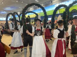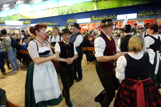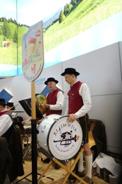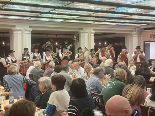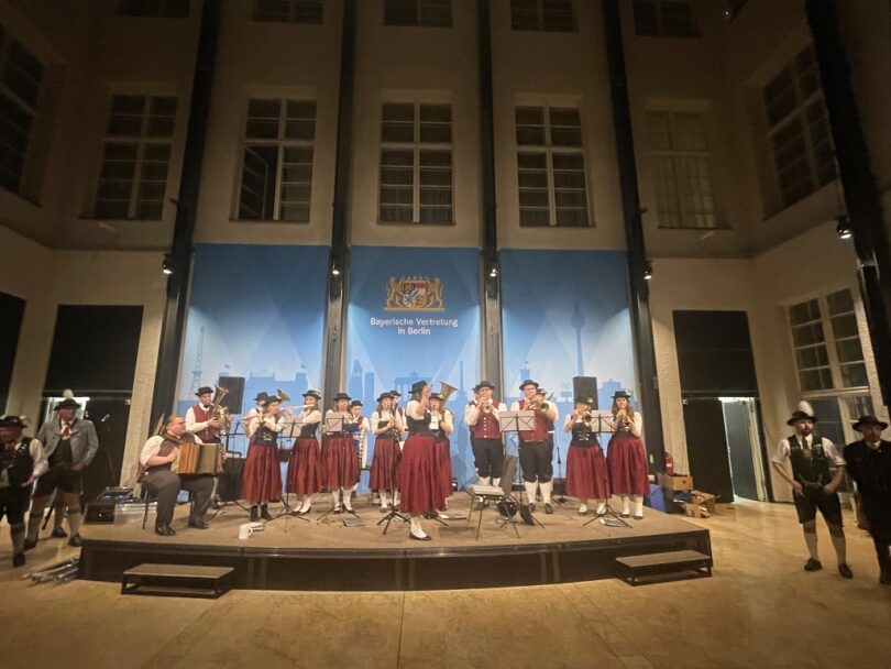 Die Musik-, Trachten- und Faschingsgilden-Gruppe kamen aus den Landkreisen Freising, Pfaffenhofen a. d. Ilm und Neuburg-Schrobenhausen. Insgesamt zehn Verein nahmen Teil an der Tour durch die Bayernhalle und durch Berlin. Ein besonderes Erlebnis war ein gemeinsamer Abend in der Bayerischen Vertretung. Begeisterte Auftritte gab es von der Blasmusik Hohenkammer, vom GTEV Ilmtaler Pfaffenhofen e.V., von der Geisenfelder Faschingsgesellschaft, vom GTEV Isartaler und von den Schweitenkirchener Musikanten.
