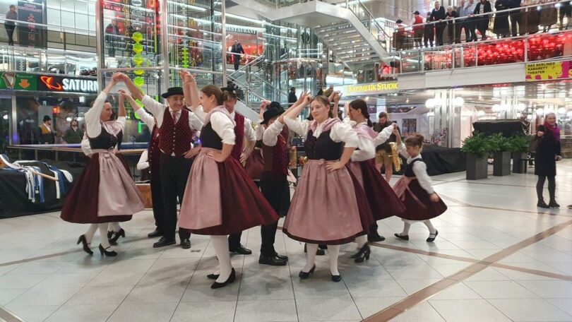 So hieß es auch am vorletzten Abend der Grünen Woche für die Trachtler und Musiker aus Bayern nach ihren Auftritten im Foyer des Europacenters, „ab in die Kartoffelkiste“ zu einem gemütlichen Heimatabend. Mit dabei der Heimat- und Volkstrachtenverein “Die Perlbachtaler” Edenstetten e.V., der GETV Almröserl Oberneukirchen, die Musikkapelle Kirchweidach, die Stadtkapelle Leipheim, sowie die Hof- und Dorf-Kapelle aus Bogen, die den Abend mit traditioneller Blasmusik musikalisch umrahmte.