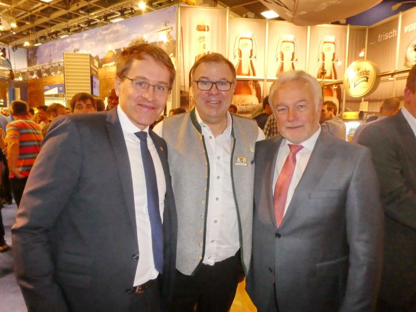Die Internationale Grüne Woche in Berlin bietet nicht nur einen weltweiten Einblick in Gastronomie, Landwirtschaft und Tourismus, sondern sie ist auch eine Plattform für unzählige Kontakte. Ein besonders beliebter Treffpunkt ist die Bayernhalle des Bayerischen Landwirtschaftsministeriums. Im dortigen Biergarten von Entenwirt Peter Schrödl finden sich Freunde der bayerischen Lebensfreude in großer Zahl ein. Andererseits treffen bayerische Anbieter bei ihren Besuchen in den benachbarten Hallen bekannte Persönlichkeiten aus Politik und Wirtschaft – wie zum Beispiel auf diesem Bild, das den Entenwirt Peter Schrödl (Mi.) mit dem FDP-Politiker Wolfgang Kubicki (re.) und den neuen Ministerpräsidenten des Landes Schleswig-Holstein Daniel Günther (CDU) zeigt.