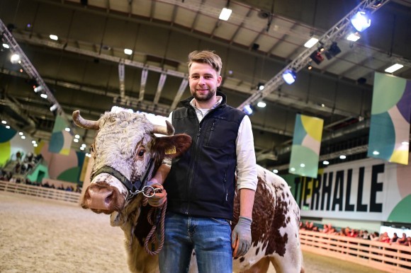 Zum ersten Mal dabei ist ein Jersey-Rind. Diese Tiere gelten aktuell als die klimafreundlichsten Grünlandverwerter. Der Grund: Die Jersey-Rinder sind für ihre Größe relativ leicht und verdichten den Boden deshalb weniger stark. Auch alte und vom Aussterben bedrohte Rinderrassen wie Pustertaler, Pinzgauer und Gelbvieh werden in der Tierhalle der Grünen Woche zu sehen sein. Ein echtes Schwergewicht ist „Condor“ – ein Fleckvieh-Zuchtbulle aus Bad Oldesloe, zehn Jahre alt und 1.500 Kilogramm schwer.