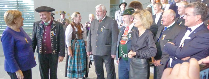 Foto: Hötzelsperger – Knut Kreuch im Dialog mit Bundeskanzlerin Angela Merkel im Januar 2020 anl. Empfang für Bayerischen Trachtenverband und Bayernbund