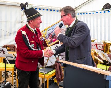 Fotos: Rainer Nitzsche – Bürgermeister Georg Huber dankt GSK-Hauptmann Fritz Dräxl mit einem aktuellen Bild der Kompanie