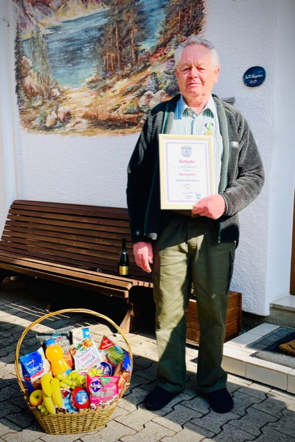 Die Gebirgsschützen-Kompanie Samerberg konnte ihrem aktiven Kameraden und Gründungsmitglied Josef Weyerer aus Weikersing zu seinem 80. Geburtstag gratulieren, coronabedingt leider nur im kleinsten Kreis. Hierbei zeichneten Hauptmann Fritz Dräxl, Oberleutnant Michael Spöck und Leutnant Peter Schrödl den rüstigen Jubilar mit der Verdienstmedaille der GSK Samerberg in Gold aus. Auch Bürgermeister Georg Huber erschien beim Jubilar, um persönlich namens der Gemeinde Samerberg zu gratulieren. Zu den weiteren Gratulanten, die sich nacheinander oder per Telefon einfanden gehörte auch Diakon Günter Schmitzberger.