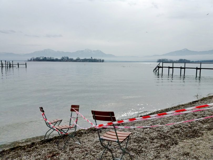 Ein Foto und gleich zwei Dokumentationen für ganz und gar unterschiedliche Tagesstimmungen: dies zeigt diese aktuelle Aufnahme vom Chiemsee-Ufer in Gstadt. Einmal verrät es die Eingeschränktheit des heurigen Faschingsdienstags und zum Anderen wird es der bevorstehenden Stille des Aschermittwochs und der Fastenzeit gerecht. Dort, wo sich sonst Insel- und Restaurant-Besucher treffen und tummeln ist derzeit nur eins vorherrschend: die Leere.