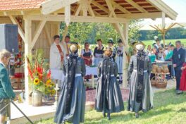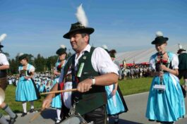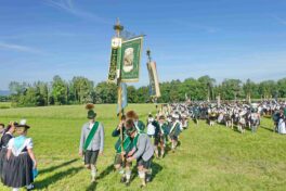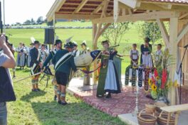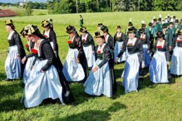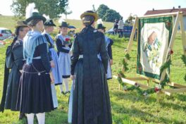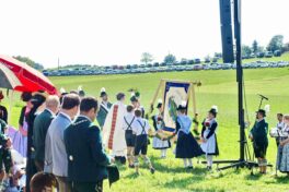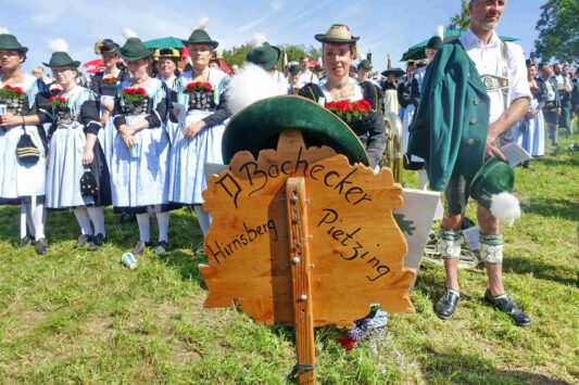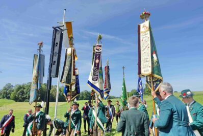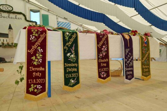 Höhepunkt des Jubiläums „100 Jahre Trachtenverein Bachecker Hirnsberg-Pietzing“ waren ein Sonntags-Gottesdienst auf freiem Felde, die dabei integrierte Weihe einer neuen Fahne sowie ein Festzug zur gemeinsamen Einkehr im Festzelt bei Moosen. Die Gottesdienst-Gestaltung übernahmen Pfarrer Claus Kebinger, Gemeindereferent Tobias Gaiser, das Gottesdienstteam vom Trachtenverein, die Bachecker Blech und der Jugendchor Hirnsberg unter der Leitung von Regina Gottschal. Die Gebete galten dabei auch Festleiter Richard Mühlbauer, der wenige Stunden zuvor ins Krankenhaus eingeliefert werden musste und sich aber wieder auf dem Weg der Besserung befand.