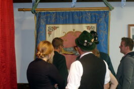 Fotos: Hötzelsperger – Andi Bauer von der Fahnenabordnung des GTEV Hittenkirchen bei der Präsentation der renovierungsbedürftigen Vereinsfahne aus dem Jahr 1973 – Eindrücke von der Versammlung im Trachtenheim Hittenkirchen.