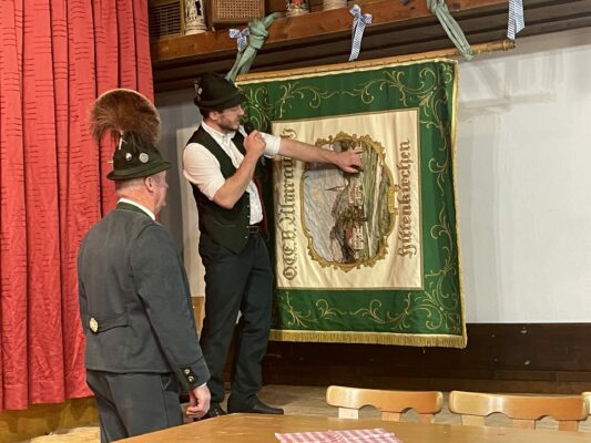 Nachdem sich die Vorstandschaft Angebote eingeholt hatte und sich zudem bereits erste Spender gemeldet hatten, gab die Vereinsführung den Auftrag in Höhe von rund 13.000 Euro an die Fahnenstickerei Zwislsberger & Jaeschke in Engelsberg. Andi Bauer als Vertreter der Fahnenabordnung erläuterte die verschiedenen Schadstellen und machte es augenscheinlich, dass die Maßnahme unumgänglich ist. Bis zum Jahrtag 2024 sollen die Arbeiten abgeschlossen sein, bis dahin wird bei feierlichen Anlässen die alte Vereinsfahne zum Einsatz kommen. Zudem ist vorgesehen, dass für die dann neue Fahne ein neuer Aufbewahrungsschrank angefertigt werden soll.