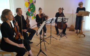 Erweckten Hänsel und Gretel und die Hexe zum Leben: (von links) das Streichquartett mit Daniela und Florian Beer, Elisabeth und Simon Nagl, sowie Erzählerin Monika Nagl.