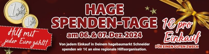 wie ihr im eingefügten Plakat seht, veranstaltet der Hagebaumarkt Prien am Samstag, den 07.12. während der Öffnungszeit von 8 Uhr bis 16 Uhr eine Spendenaktion. Diese Aktion ist für unseren Verein Hilfe für Bürgerinnen und Bürger Prien am Chiemsee e.V. am Samstag vorgesehen. Von jedem Kassenbon wird ein Euro für uns gespendet. Das bedeutet, je mehr Kassenbons zusammenkommen desto größer ist der Spendenerlös für uns.