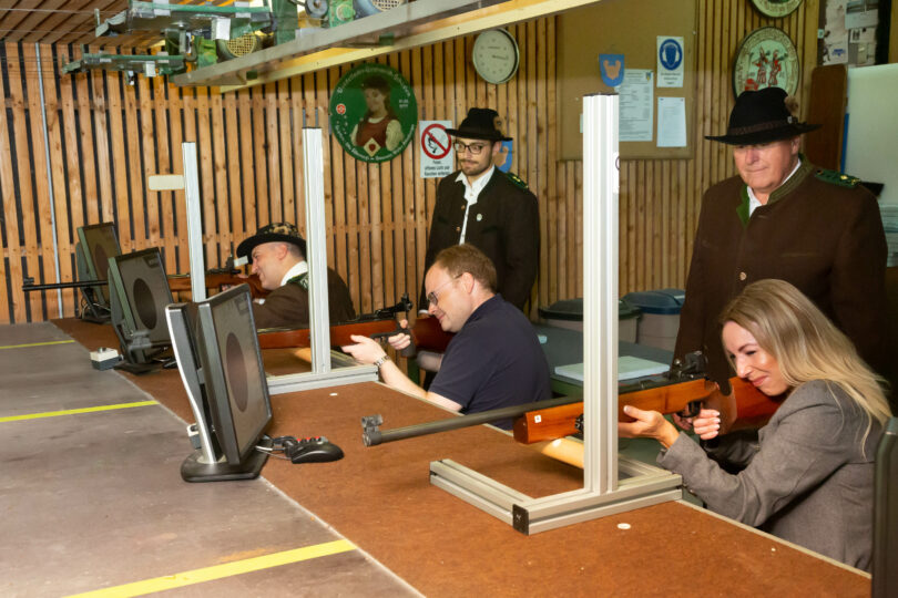 Foto: Anita Berger  – Am Schießstand in der Mitte Priens Erster Bürgermeister Andreas Friedrich