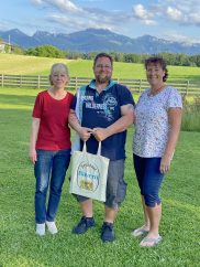 Seinen ersten Urlaub mit seinen Eltern hatte der Glasermeister Andreas Kubanek aus Hamburg-Pinneberg im Alter von zwei Jahren auf dem Bauernhof der Familie Fischer in Prien-Siggenham. Seine ersten Bulldog-Mitfahr-Erlebnisse hatte er wenig später als junger Urlaubsgast auf dem Martlhof in Prien-Stetten und die ersten Moped-Abenteuer entstanden bei einem weiteren Aufenthalt bei der Familie Schreiner in Prien-Bachham. Dort ist der inzwischen 52jährige Stammgast bereits seit 37 Jahren – und seit jetzt genau 50 Jahren treuer Urlauber in Prien. In dieser Zeit hat sich eine tiefe Freundschaft zu den Gastgebern entwickelt. Für Gastgeberin Martina Schreiner ist Andreas Kubanek ein Glücksfall, denn dieser ist ob seiner handwerklichen Fähigkeiten schon oft eine große Hilfe gewesen. Seine Hilfsbereitschaft stellte das „Nordlicht“ auch vor fünf Jahren unter Beweis, als er beim Chiemgauer Gautrachtenfest dem Atzinger Trachtenverein als Spüler diente. In der Urlaubs-Freizeit ist Andreas Kubanek und seiner Frau Brigitte der Familien-Anschluss ebenso wichtig wie das Wandern auf die Kampenwand. Schon mehrfach hat er sich im dortigen Gipfelbuch verewigt. Zuletzt standen der Besuch des Ritterfestes in Kufstein und das Bauerngolfen auf dem Samerberg auf dem Programm. Bei einem gemütlichen Beisammensein auf der Terrasse der Gastgeber mit Blick auf die Kampenwand erzählen die Hamburger, dass bereits vor ihrer Zeit der Chiemgau im Urlaubs-Visier ihrer Vorfahren war, dazu sagte Andreas Kubanek: „Meine Oma, die mit 97 Jahren noch lebt und mein Opa waren zu ihrer Zeit auf dem Schmeizlhof in Brandenberg bei Wildenwart zur Sommerfrische, das war uns ein nachahmenswertes Vorbild“. Mit dem Bildband „Chiemsee-Maler“ überbrachte Martina Schreiner auch die besten Dankes-Grüße der Gemeinde Prien und der PrienMarketing GmbH für die überaus lange Ferientreue zur Marktgemeinde Prien.