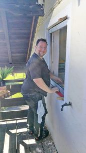 Bilder privat: Andreas half kräftig mit beim Einbau von neuen Fenstern in Bachham und weitere Erinnerungen