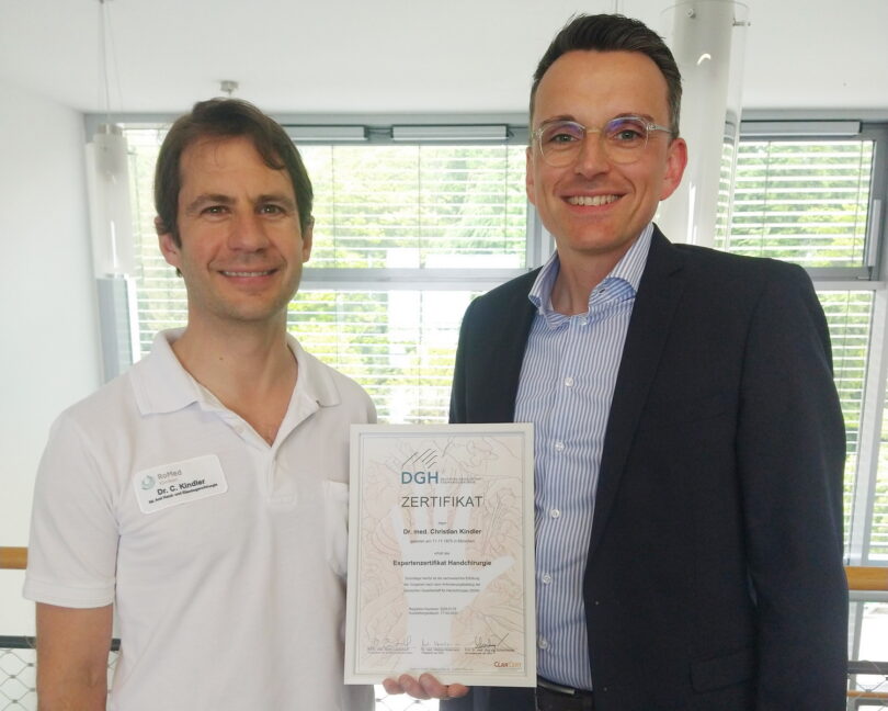 Das personenbezogene Zertifikat hebt seine besondere handchirurgische Exzellenz hervor. Zahlreiche Nachweise wissenschaftlicher Tätigkeit und seine aktive Beteiligung an nationalen und internationalen Kongressen sowie Weiterbildungen durch Hospitationen an renommierten handchirurgischen Abteilungen waren gefordert. „Wir sind stolz auf das außerordentliche Engagement von Herrn Dr. Kindler und froh, so einen Top-Mediziner an unserer RoMed Klinik in Prien für die regionale Bevölkerung im Team zu haben. Selbst Spitzensportler wie der ehemalige Skirennläufer Markus Wasmeier und der amtierende Vizeweltmeister Rennrodler Max Langenhan vertrauen auf seine Expertise“, so der Kaufmännische Leiter Marco Weidemeier.