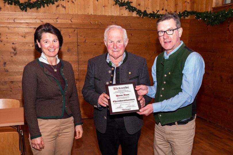 Foto: Rainer Nitzsche – v.l. Roswitha Estermann, Hans Auer und Georg Huber bei der Überreichung der Ehrenurkunde.