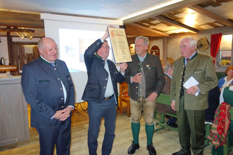 Foto/s: Hötzelsperger – Ernennung von Hans Berger aus Oberaudorf zum Ehrenmitglied des Bayernbundes im Kreisverband Rosenheim.