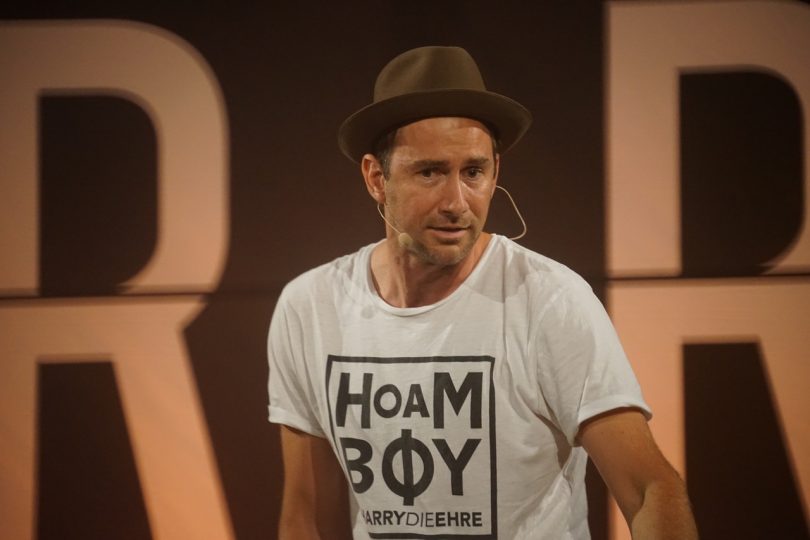 Ein Abend im Festzelt in Litzldorf im Rahmen des 50- jährigen Jubiläums der örtlichen Jungbauernschaft: das Zelt ist voll, Markus Stoll alias Harry G ist mit seinem aktuellen Programm „HarrydieEhre” zu Gast“, welches auf sein erstes Bühnenprogramm „Leben mit dem Isarpreiß“ folgte, mit dem er bereits große Erfolge gefeiert hat. Wie gewohnt ist er sehr direkt, auch ein bisschen derb, er beherrscht die Kunst, Menschen feldstudienartig zu beobachten und dann in pointierten Schimpftiraden anzugehen, er hält dem Publikum immer wieder einen Spiegel vor und grantlt sich durch die Kuriositäten unserer Gesellschaft. Das kommt an, es nimmt ihm niemand übel, pointierte Überspitzung ist bei Harry G ausdrücklich erwünscht. Und so jagte in einem atemberaubenden Tempo eine Pointe die andere und das Zelt brodelte vom ersten Augenblick an. Sei es ob es um das weibliche und männliche Prozedere bei Selfies ging – “Der Mann trinkt fünf Halbe, fährt über die rote Ampel und bekommt ein Foto. Die Frau entwickelt erst ein Konzept und macht dann ein Shooting.“ – oder den Umgang der älteren Generation mit dem Smartphone – hier musste seine Mutter herhalten – um den Besuch im Sportverein, in dem früher das Zirkeltraining 10,00 DM Jahresbeitrag kostete, während es heute als CrossFit bezeichnet wird und man dafür einem Fitnessclub beitreten muss mit einer monatlichen Gebühr von 100,00 Euro, über Whatsapp-Gruppen und deren Unsinnigkeit…die Zuschauer kamen auf dem Lachen nicht heraus und die über zwei-stündige Kabarett-Show war gefühlt im Nu verflogen.