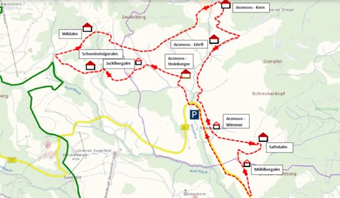 - 09:45 Uhr – 10:30 Uhr, Wanderung über Wimmerhütte zur Arzmoosalm – Dörfl