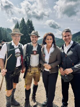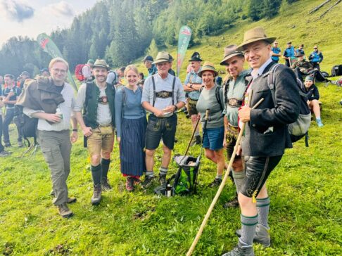 Bestens organisiert vom AVO, den Ruhpoldinger Almbauern und der Gemeinde Ruhpolding gab es zwar kleinere Veränderungen des Organisationsablaufs, aber insgesamt eine gut funktionierende Großveranstaltung dank unzähliger ehrenamtlicher Helfer wie Feuerwehr, Bergwacht und Polizei. Die Begrüßung auf der Thorau Alm fand pünktlich um 9 Uhr statt, wobei prominentester Gast der neue Bundesagrarminister Alois Rainer war, der ständig von Journalisten, Rundfunk und Fernsehen umlagert war. Auf die Frage unserer Zeitung, welchen Eindruck er von der Almwirtschaft auf den Ruhpoldinger Almen bisher habe, zeigte er sich ehrlich begeistert: „Da geht mit einfach das Herz auf.“ Man müsse alles tun, um diese wunderbare Landschaft, die nur dank der über Jahrhunderte andauernde Arbeit der Almbauern so erhalten bleiben konnte, weiter zu fördern.