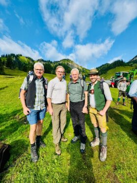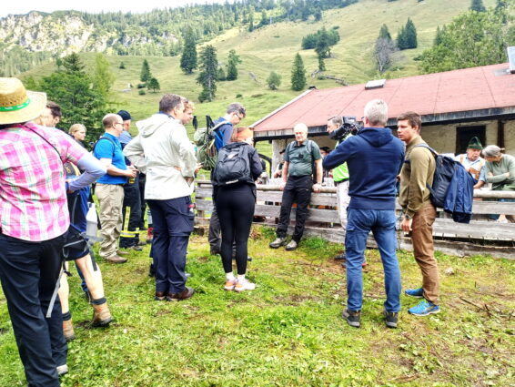 Günther Felßner, seit 2022 Präsident des Bayerischen Bauernverbandes und seit 2023 stellvertretender Präsident des Deutschen Bauernverbandes, betonte seinerseits die tägliche harte Arbeit der Almbauern. In der Politik gebe es zwar viele „Schützer“ und auch Erfolge in der Landwirtschaft, aber beim Schützen würden oftmals falsche Akzente gesetzt. „Wir verlieren Tiere, Bauern und Bauernhöfe.“ Beim Thema Wolf kritisierte er stark, die „Verschleppungstaktik“ des Bundesumweltministeriums. Zum Abschluss der Reden stellte Bernhard Haberlander, einer der neun Berechtigten der Alm, die Thorau Alm südlich des Hochfelln auf einer Höhe zwischen 1100 und 1400 Meter vor. Im Jahr 1993 sei hier die Trennung von Wald und Weide vorgenommen worden. Jährlich würden rund 250 Tiere aufgetrieben und es gebe eine sehr hohe Mankeipopulation.
