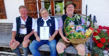 Im Rahmen der Hauptalmbegehung stellten die Almbauren ihre Almen vor, auf der Agersgschwendtalm machte dies Simon Ager. Musikalisch begrüßt wurden sie dort von den Weisenbläsern Wolfgang Kaindl und Schorsch Schleipfer aus Unterwössen