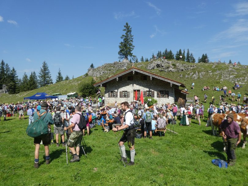 Die 70. Hauptalmbegehung des Almwirtschaftlichen Vereins Oberbayern (AVO) führte fast eintausend Almleute und weitere Leute, die mit dem Almleben beruflich zu tun haben, für einen langen Wandertag in das Hochriesgebiet auf dem Samerberg. Bestes Wanderwetter begünstigte den groß angelegten Almtag, der bei der Käseralm mit der Begrüßung durch AVO-Vorsitzenden Georg Mair und AVO-Geschäftsführer Michael Hinterstoißer sowie mit einer Segnung durch Diakon Günter Schmitzberger begann. Alsdann machten sich die Teilnehmer auf den Weg zu den Almen mit einer Gesamt-Wegstrecke von 14 Kilometern. Rast-, Informations- und Diskussions-Stationen wurden gemacht auf der Ebersberger Alm (Eigentumsalm von Klaus Stuffer aus Haus am Samerberg), auf der Pölcheralm (Gemeinschaftsalm im Eigentum von Marinus Hartl in Mitterhof, Georg Stuffer in Törwang und Angelika Schnitzenbaumer-Dietrich), auf der Spatenaualm-Doagl (Eigentrumsalm von Marianne und Peter Sattlberger) sowie auf der Weyereralm (Eigentumsalm von Franz Daxlberger). Bürgermeister Georg Huber von der Gemeinde Samerberg und Landrat Wolfgang Berthaler vom Landkreis Rosenheim freuten sich über das zahlreiche Mitgehen von den Almleuten und dankten den Almbesitzern, Bauern sowie den Sennerinnen und Sennern für ihre wichtige Arbeit. „Danke für eure tolle Arbeit zugunsten der Tourismusregion!“ – so Landrat Berthalter, der noch informierte, dass der Landkreis Rosenheim mit 46 Gemeinden und 260.000 Einwohnern der zweitgrößte Landkreis in Bayern ist und dass ein Drittel der Landkreisfläche im Gebirge liegt. Ihre Wertschätzung und weitere Unterstützung gegenüber den Almbauern brachten als Vertreter der Bayerischen Staatsregierung Umweltministerin Ulrike Scharf und Wirtschaftsministerin Ilse Aigner zum Ausdruck. AVO-Vorsitzender Georg Mair stimmte nachdenklich als er berichtete, dass in Bayern pro Jahr ein Almflächenverlust von 150 bis 600 Hektar zu verzeichnen ist. Er führte dies auf mehr Wieder-Bewaldung und weniger Beweidung zurück, die Anzahl der Almen hingegen ist stabil geblieben. Große Sorgen bereitet die weitere Vermehrung des Wolfs, dessen Angriffe auf das Almvieh bereits zu einer ersten Almschließung geführt hat. Unter den vielen Ehrengästen waren Vertreter des Landtags, des Bezirks, der Regierung von Oberbayern, des Bayerischen Bauernverbandes, von verschiedenen Behörden und Ämtern, Agrar-Politiker Erich Schwärzler aus Vorarlberg und sogar ein Gast aus Nepal. Ein besonderer Dank galt dem Samerberger Bezirksalmbauer Bartholomäus Mayer für dessen Vorbereitungen. Die Vertreter des AVO sicherten Mayer zu, ihn im kürzlich erlittenen Hofbrand nach allen Kräften zu unterstützen.