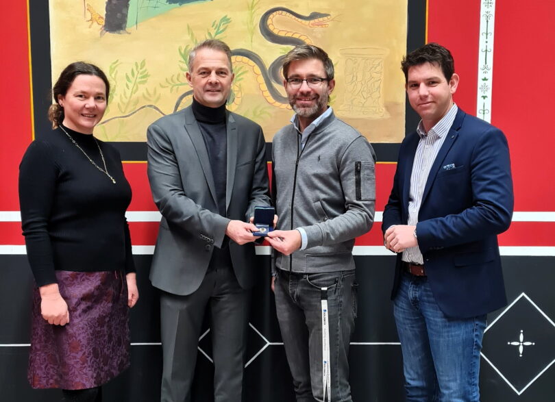 Bericht und Bild: VKR / Lokschuppten Rosenheim – Foto von links: Die Leiterin des Ausstellungszentrums Jennifer Morscheiser, der Vorstandsvorsitzende der Sparkasse Rosenheim-Bad Aibling Karl Göpfert, Hauptgewinner Sebastian Volkwein und vkr-Geschäftsführer Florian Englert.