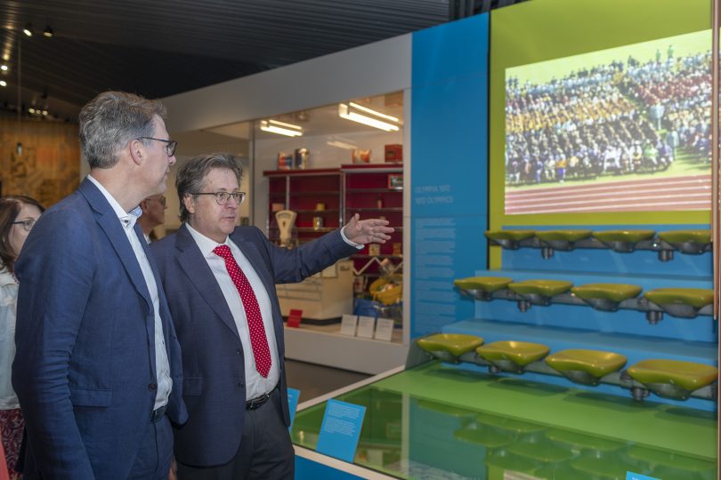 Bericht und Foto: Haus der Bayerischen Geschichte | Foto: www.altrofoto.de – Der bayerische Staatsminister für Wissenschaft und Kunst Markus Blume und der Direktor des Hauses der Bayerischen Geschichte Dr. Richard Loibl beim Eröffnungsrundgang durch die Sonderausstellung „Bavaria und Olympia 1896 – 2022“ im Haus der Bayerischen Geschichte in Regensburg.