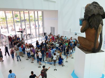 Die Verbesserungsvorschläge der Besucher, die das Haus ganz überwiegend positiv beurteilen, werden ab dieser Woche umgesetzt. Neue Leuchten sind eingetroffen, so dass Mittwochnacht die Beleuchtung verbessert werden kann. Und wenn alles gut geht, erfolgt ebenfalls noch in dieser Woche die Installation eines neuen Wegweissystems in der Ausstellung. Auch an der Beförderungstechnik muss noch gearbeitet werden. Damit dürfte das HdBG gerüstet sein für den weiteren Ansturm. Allein für den Juli sind bereits 300 Führungen angemeldet.