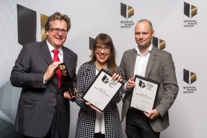 v. l. n. r.: Dr. Richard Loibl, Direktor Haus der Bayerischen Geschichte, Natascha Zödi-Schmidt, Stabsstellenleitung Kommunikation Haus der Bayerischen Geschichte, und Ulrich Aldinger, Creative Director Peter Schmidt Group GmbH. © German Brand Award | Foto: Lutz Sternstein