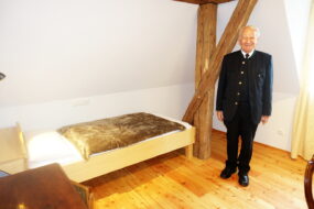 Die vierjährige Planungs- und Sanierungszeit war vor allem für das Kloster selbst eine Herausforderung. Cellerarin Schwester Elisabeth nahm sich eines großen Teils der Bauleitung persönlich an. Bei der Projektvorstellung im Saal des Klosterwirts dankte sie den vielen Beteiligten und lobte das gute Einvernehmen mit den verschiedenen Behörden. Annemarie Biechl, ehemalige Landtagsabgeordnete und Vorsitzende des Freundeskreises für die Abtei Frauenwörth würdigte in ihrem Grußwort die beispielhafte Leidenschaft und Sorgfalt von Schwester Elisabeth und allen am Bau beteiligten Firmen und Leuten und ergänzte: „Seit 1994 begleiten wir als Freundeskreis das Kloster und wollen es auch für die Zukunft so handhaben. Der Ort des Gästehauses ist etwas Besonderes, das Kloster lebt und wir sind stolz zusammen mit vielen anderen Groß- und Kleinspendern einen Beitrag zum Gelingen des Bauwerkes beigetragen zu haben“. Stellvertretender Landrat Sepp Hofer vom Landkreis Rosenheim, selbst Zimmerermeister würdigte nicht nur das Bauwerk, sondern vor allem den guten Geist, der zusammen mit einem gesunden Menschenverstand fortan dazu dienen möge, dass sich Aus- und Eingehende an einem wunderbaren Ort der Geschichte wohlfühlen. Einblicke in die einzelnen Baumaßnahmen, in die einzelnen Baufortschritte und vor allem in die gefundenen Lösungen bei Problemen von der Trockenlegung bis zur Dachsanierung erläuterten die Architekten PD Dr.-Ing. habil. Christian Kayser von der Ingenieure und Architekten GmbH Kayser + Böttges / Barthel + Maus in München sowie der aus Schleching stammende und seit vielen Jahren mit dem Kloster planerisch verbundene Architekt Helmut Birner. Nach der Baugeschichten-Präsentation im Klosterwirt nahm Äbtissin Johanna Mayer OSB die Segnung des Hauses und der einzelnen Räume vor und zusammen mit ihrem gesamten Konvent lud sie zu Führungen ein.