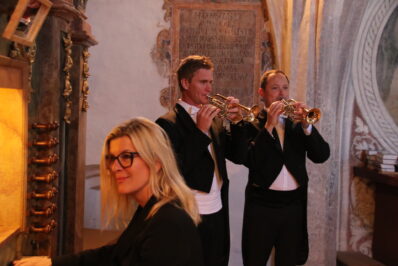 Die Chorgemeinschaft Seeon und das Jugendorchester „capella catabile“ mit Konzertmeister Alexander Krins führen gemeinsam mit den Solisten Zsofia Szabo – Sopran, Astrid Monika Hofer – Alt, Konstantin Igl – Tenor, Christoph Schöffmann – Bass die Messe auf. Wolfram Heinzmann spielt Cembalo und Helmut Wittmann Barockpauken. Der 1. Solotrompeter Johannes Moritz der Münchner Staatsoper sowie der 1. Solotrompeter des Mozarteumorchesters Salzburg Andras Gergely Gerhardt spielen zudem im Duett mit der Orgel. Die Leitung und Orgel liegt in den Händen der Kirchenmusikerin Andrea Wittmann. Karten gibt’s im Ticketbüro Prien unter 08051-965660.