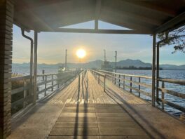 Fotos: Hötzelsperger – Münster Frauenwörth in diesen Adventtagen und Schiffsanlegestelle in Gstadt.